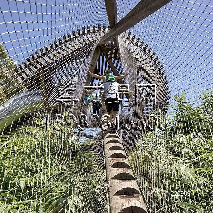 游樂(lè)園防護(hù)繩網(wǎng)采用優(yōu)質(zhì)不銹鋼絲繩和鋁鎂合金卡扣結(jié)合經(jīng)特殊工藝編織而成。是不銹鋼繩網(wǎng)的一種。