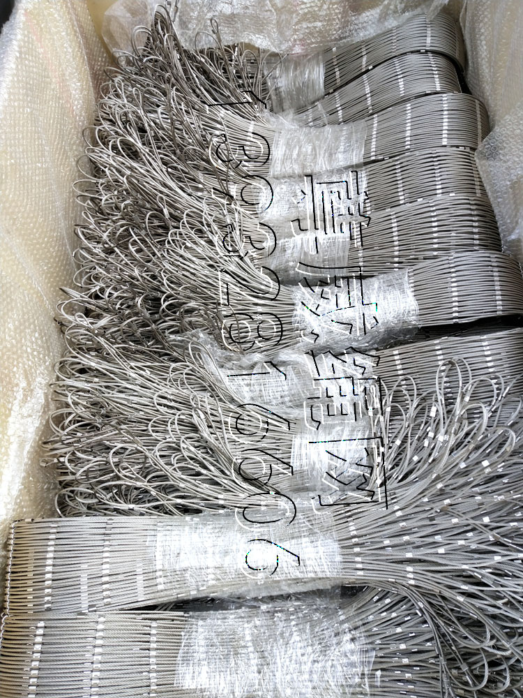 常用鋼絲繩結(jié)構(gòu):7x7和7x19優(yōu)質(zhì)不銹鋼絲繩。常用繩徑:1.0、1.2、1.5、1.6、2.0、2.4、2.5、3.0、3.2、4.0、5.0mm等常用材質(zhì)有:304、304L、316、316L不銹鋼絲繩。我們可以做任意網(wǎng)孔,按客戶要求生產(chǎn),大小網(wǎng)孔都能生產(chǎn)。