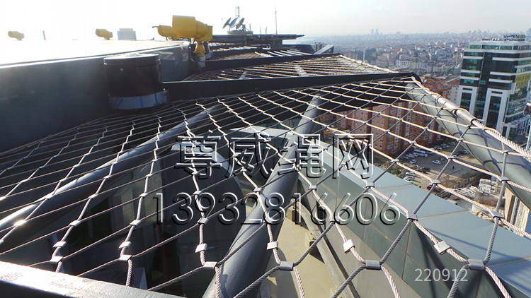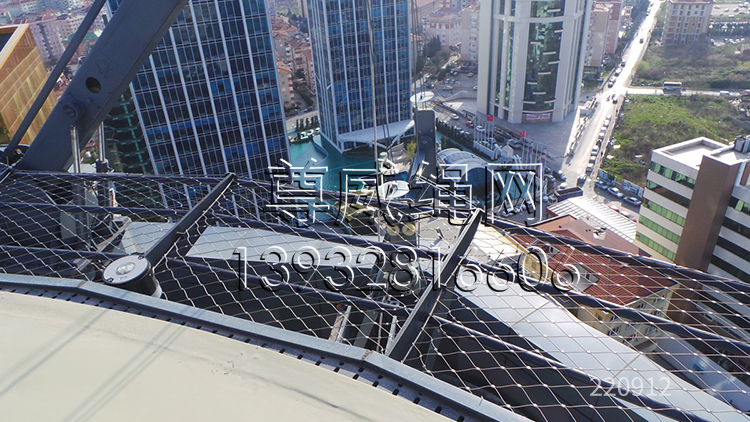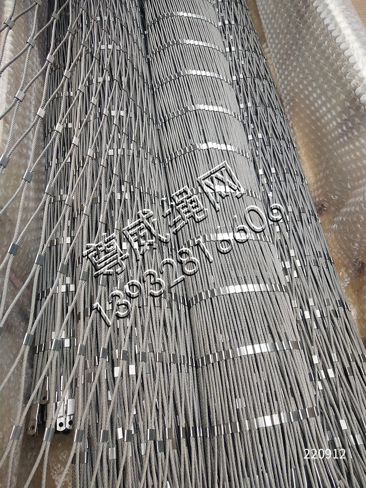 【安裝注意】:附件分布合理,注意承受力,網(wǎng)面展開角度合理,建議網(wǎng)孔展開角度為60-90度角。做到每個標(biāo)準(zhǔn)件和其它安裝附件,一定要安裝牢固。不銹鋼繩網(wǎng)連接一定要緊,不要有外露頭。